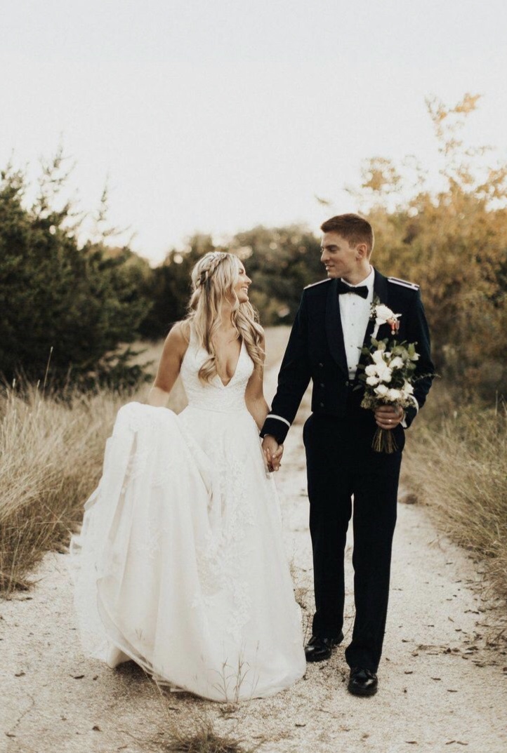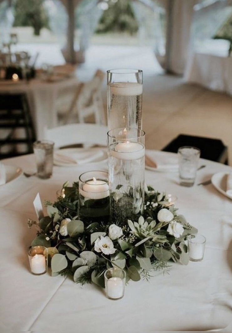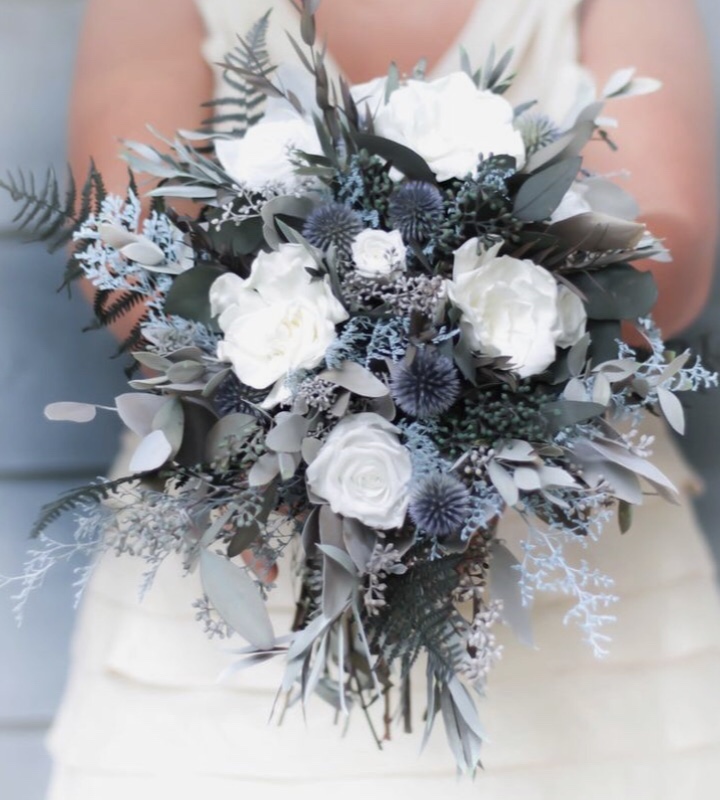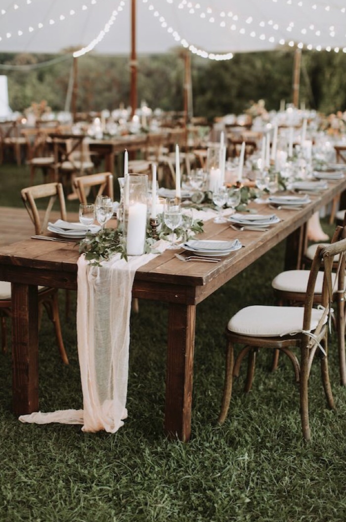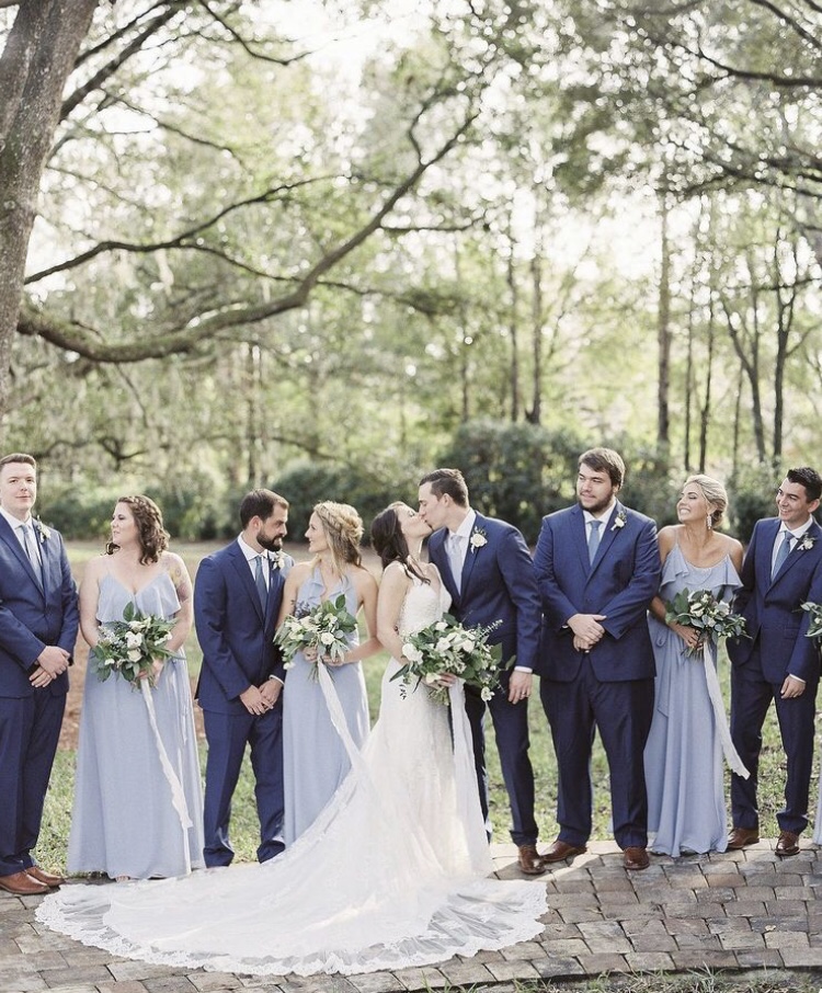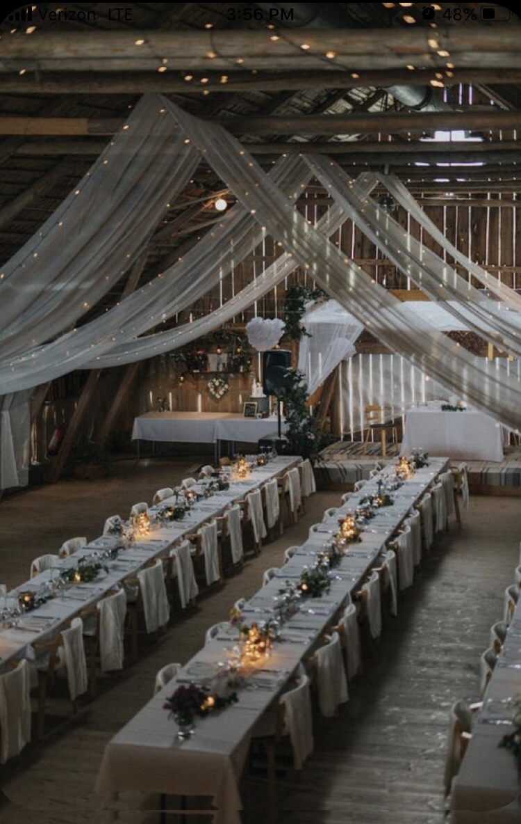 I have difficulty putting our theme into words. What I have created in my mind pulls aspects from several other themes. So, I would describe our theme is romantic, slightly bohemian, garden party, and rustic all combined into one. Our colors are dusty blue, navy, whites, greenery, and copper/rose gold accents.